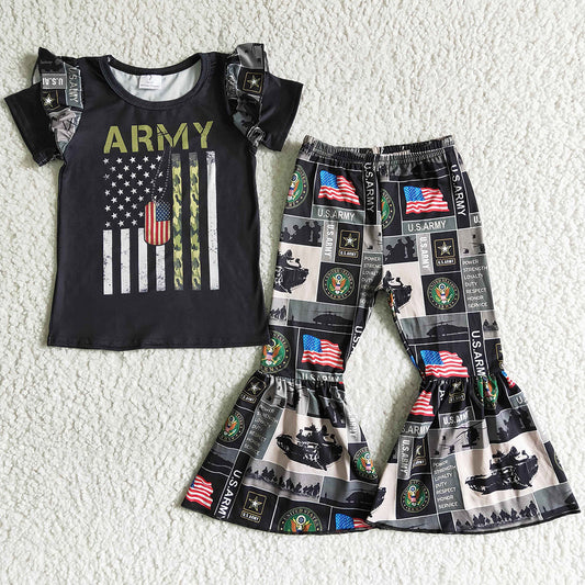 Boutique Baby Girls Clothes Short Sleeve Bell Bottom Pants Girls Outfits Wholesale Girls Clothing Sets Aa-4