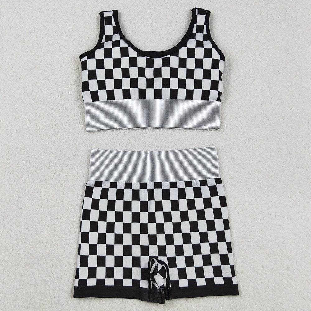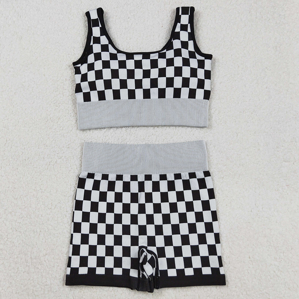 Adult Women Clothes Sleeveless Black Plaid Vests Top Short Sets GSSO2703 9.1