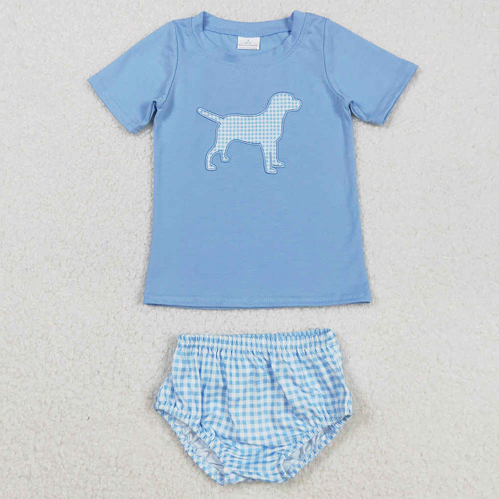 Baby Boys Clothes Blue Shirts Embroidery Dog Top Bummies Sets GBO0470 9.2