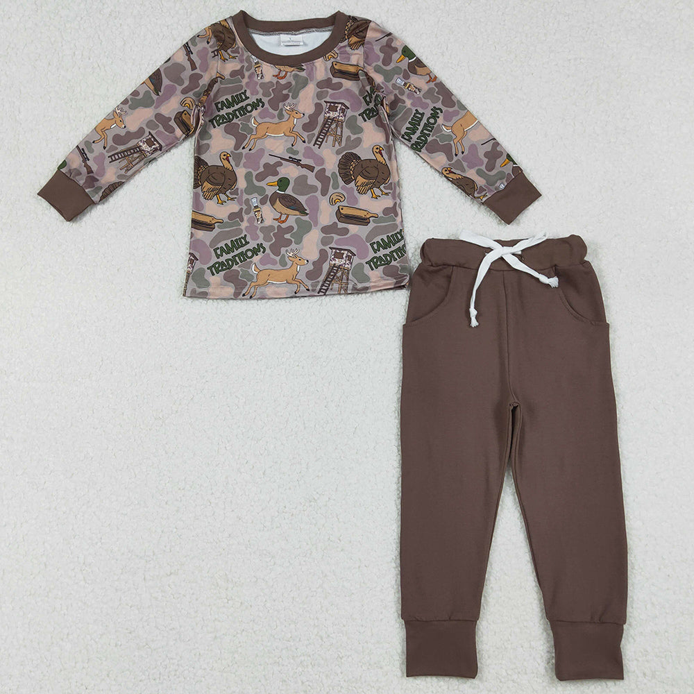 Baby Boys Clothes Brown Turkey Ducks Camo Top Pockets Pant Hunting Clothes Set BLP1178 10.1