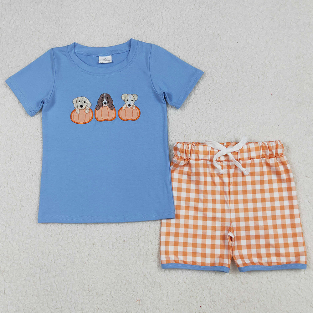 Baby Boys Clothes Embroidery Dogs Pumpkins Tunic Tops Shorts Sibling Sets GSSO2700 BSSO1547 9.9