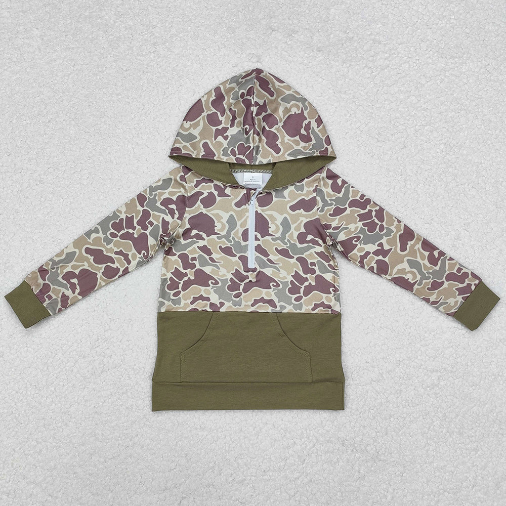 Baby Boys CLothes Green Camouflage Hooded Zip Pullovers Tops BT0913