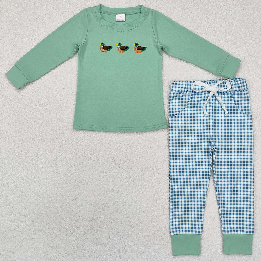 Baby Boys Clothes Green Ducks Tee Shirts Top Checkered Pants Clothes Sets BLP1021