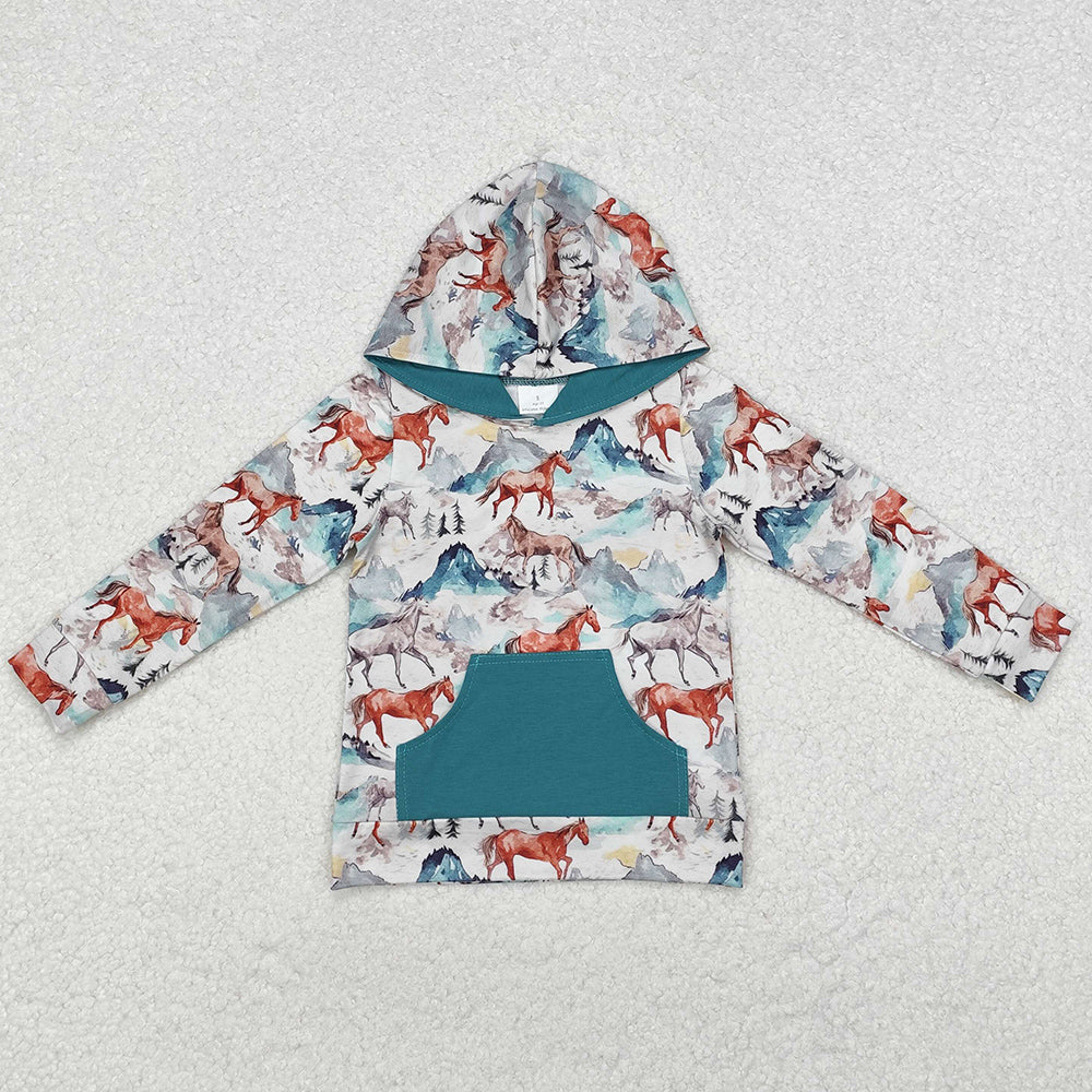 Baby Boys Clothes Hoodies Tops Western Horse Hooded Long Sleeve Tops BT0868