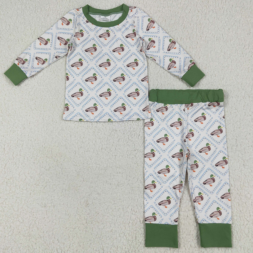 Baby Boys Pajamas Long Sleeves Green Ducks Plaid Top Pant Pajamas Sets BLP1086 6.24