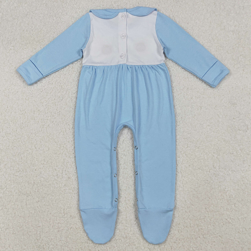 Baby Boys Rompers Blue Embroidery Pumpkins Turkey Thanksgiving Footed Rompers LR2562 10.2