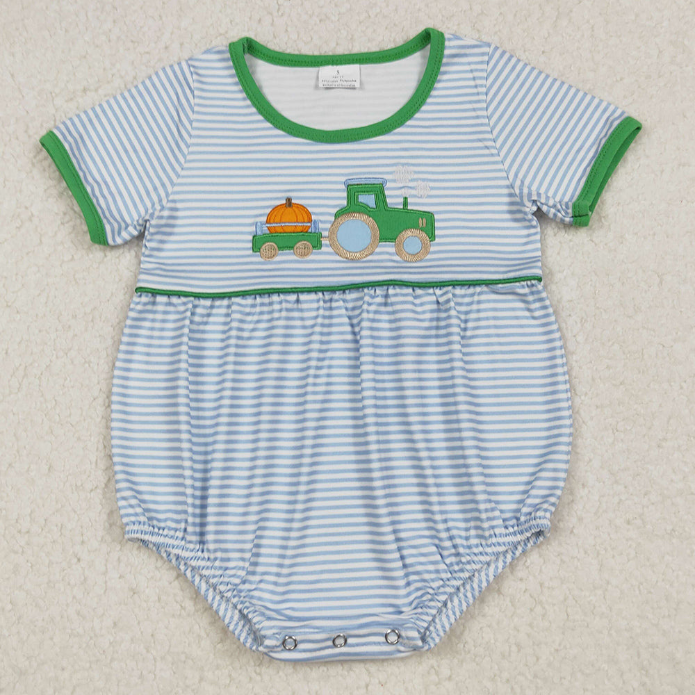 Baby Boys Rompers Blue Stripe Pumpkins Truck Embroidery Fall Rompers SR3201 9.20