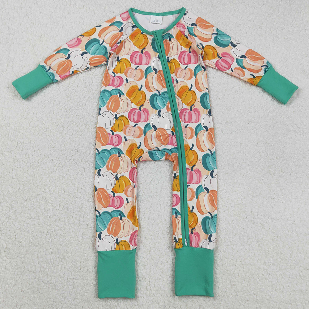 Baby Boys Rompers Colorful Pumpkins Plaid Fall Zipper Footie Rompers LR2552 9.2