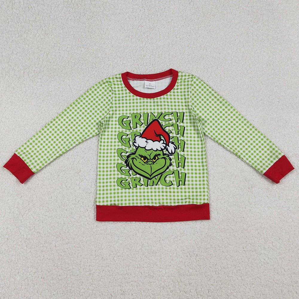 Baby Boys T-shirts Green Face Plaid Christmas Tee Shirts Top BT1321 10.2