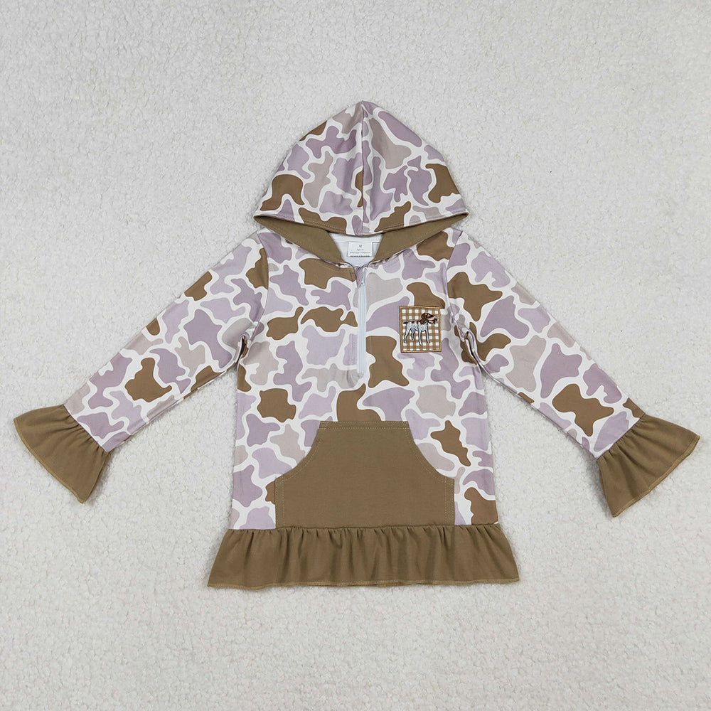 Baby Girls Clothes Brown Camo Embroidery Dog Ducks Pocket Zip Hunting Hoodies Top GT1134 10.1