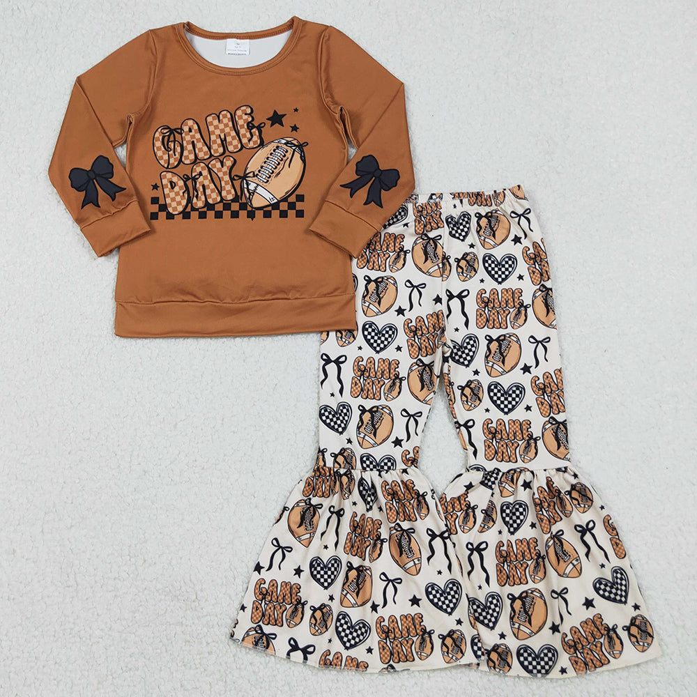 Baby Girls Clothes Brown Game Day Footballs Top Bell Bottom Pant Team Clothes Set GLP2721 10.3