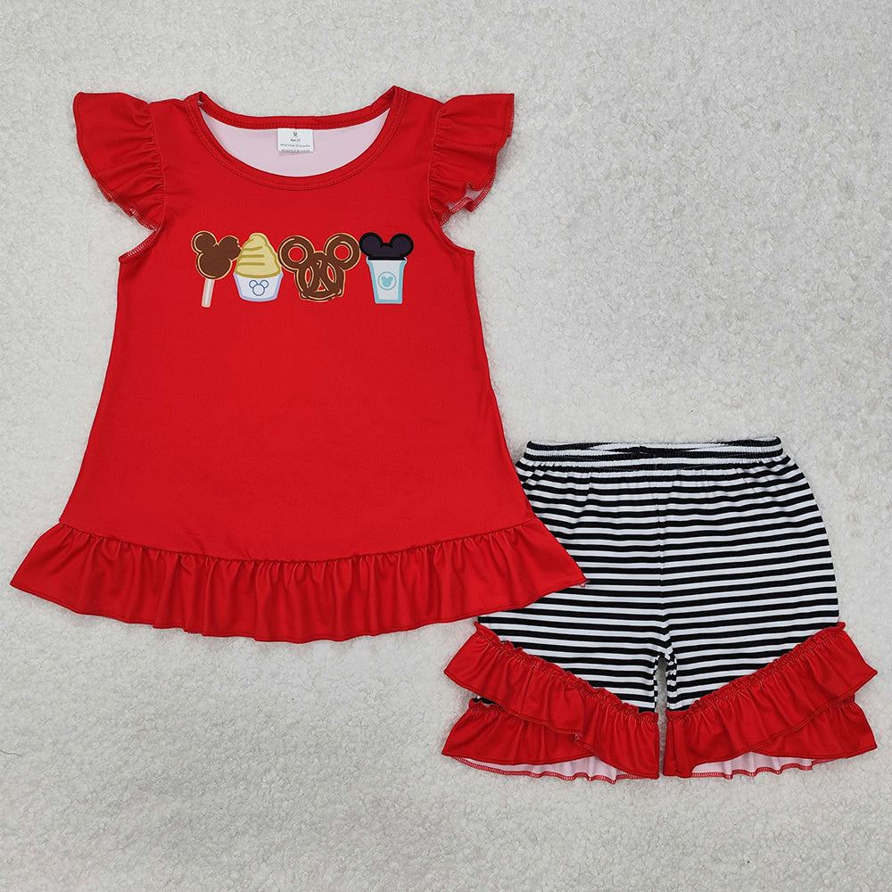 Baby Girls Clothes Cartoon Snacks Tunic Ruffle Shorts Sets GSSO1616
