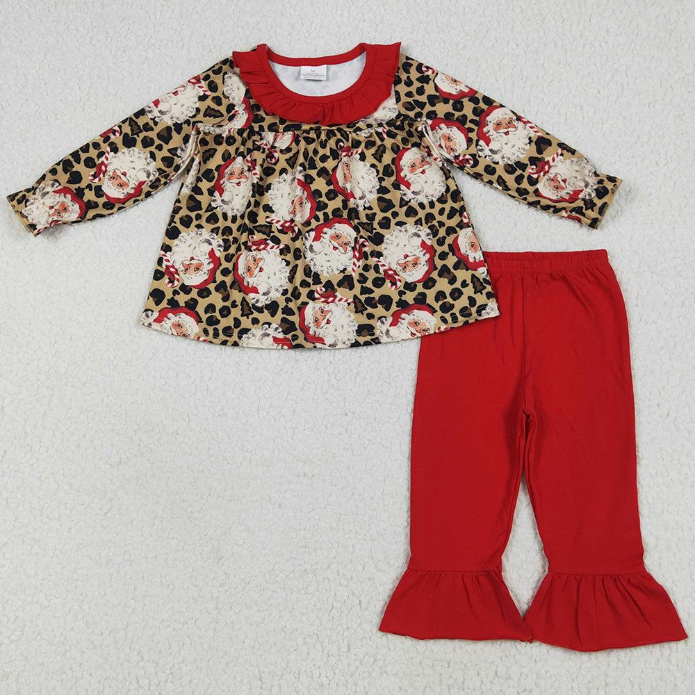 Baby Girls Clothes Christmas Leopard Santa Tunic Ruffle Pants Sets GLP2369 6.19
