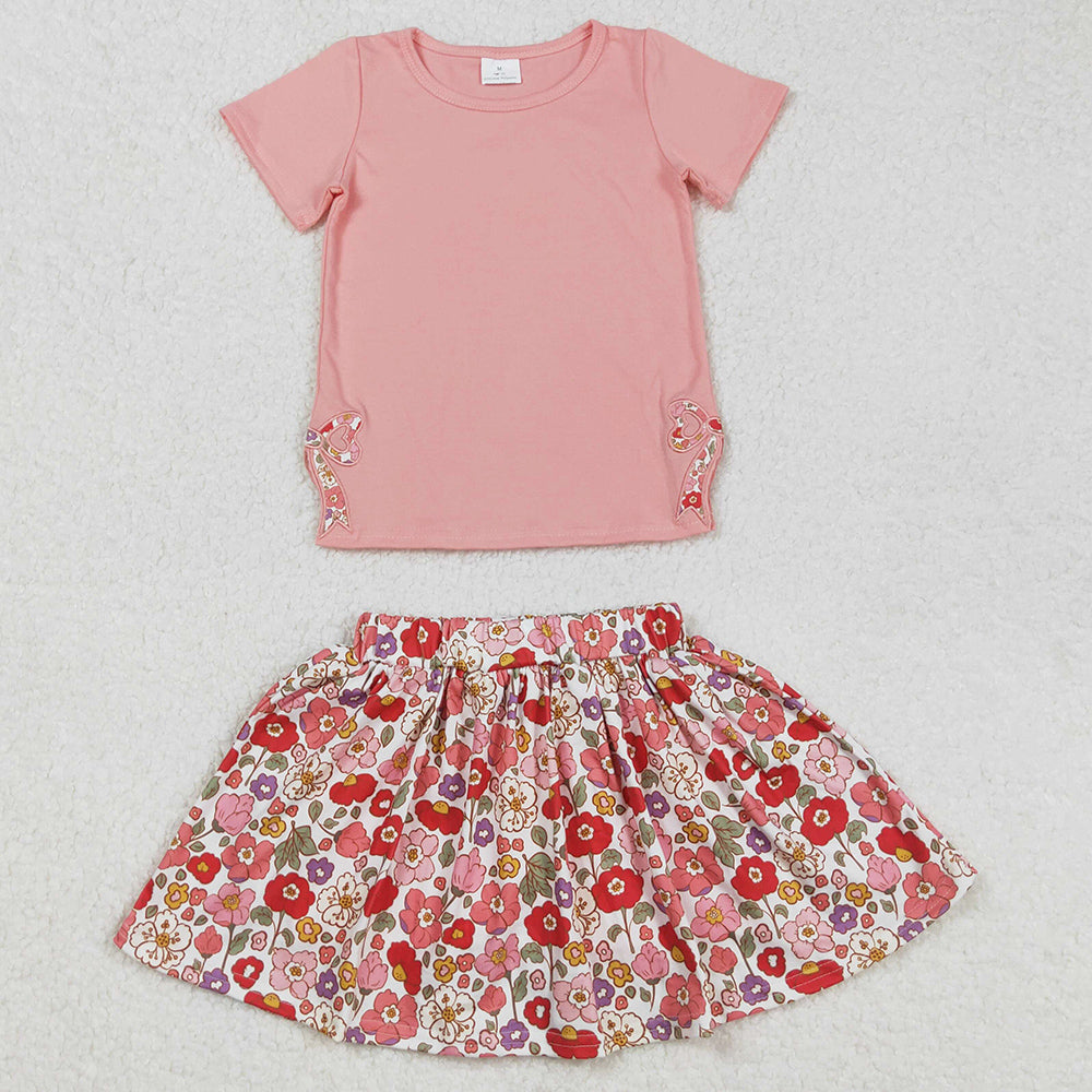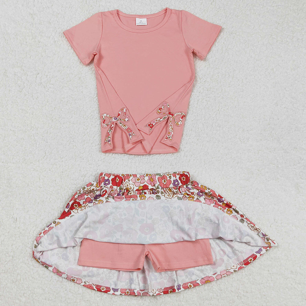 Baby Girls Clothes Coral Bow Embroidery Tops Flowers Skort Skirt Clothes Sets GSD1721