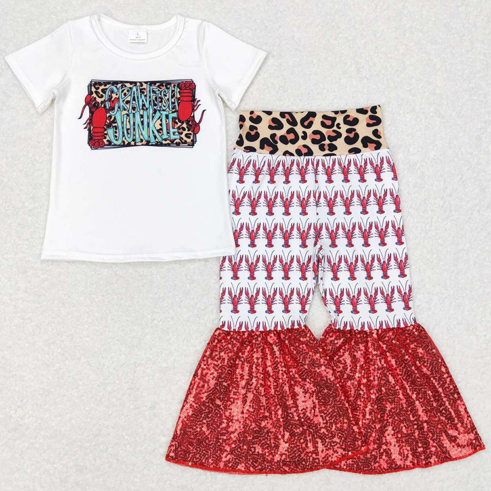 Baby Girls Clothes Crawfish Short Sleeve Shirt Bell Pants Sets GSPO0938
