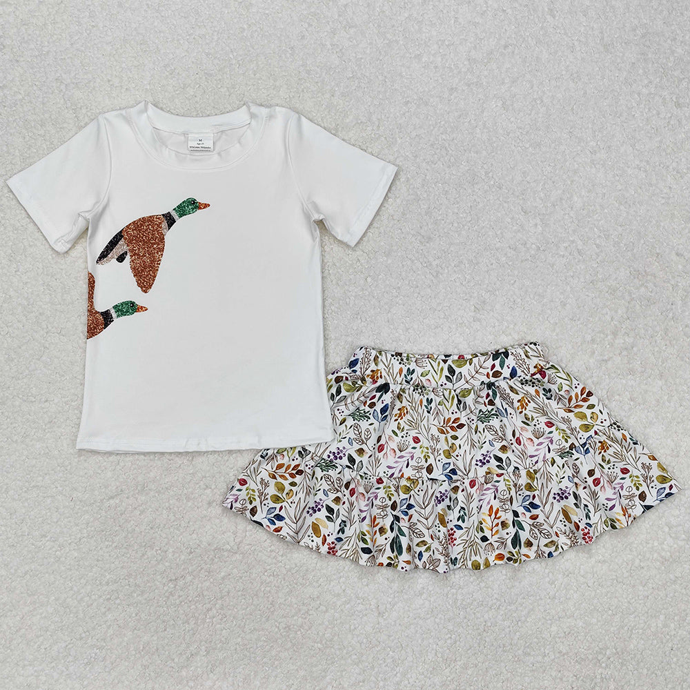 Baby Girls Clothes Mallard Duck Shirt Floral Skirt Clothes Sets GSD1546