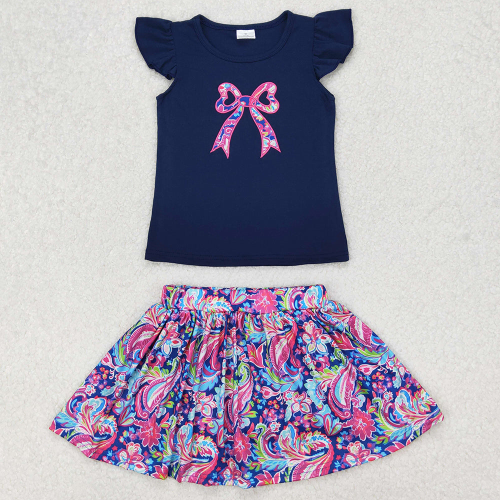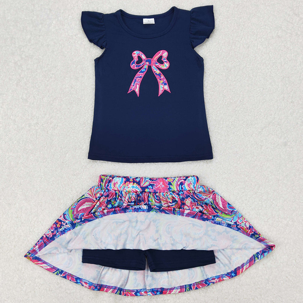 Baby Girls Clothes Navy Bow Embroidery Shirts Shorts Skirt Sets GSD1689