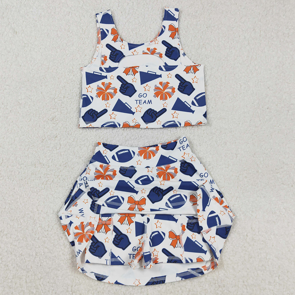 Baby Girls Clothes Navy Footballs Vest Top Short Skirts Yoga Sets GSD2694 9.2