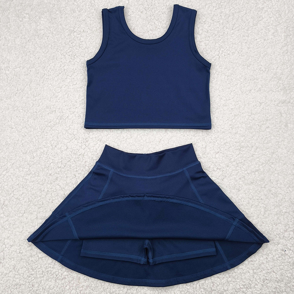 Baby Girls Clothes Navy Vest Top Yoga Active Sports Skorts Clothes Sets GSD1987 4.10