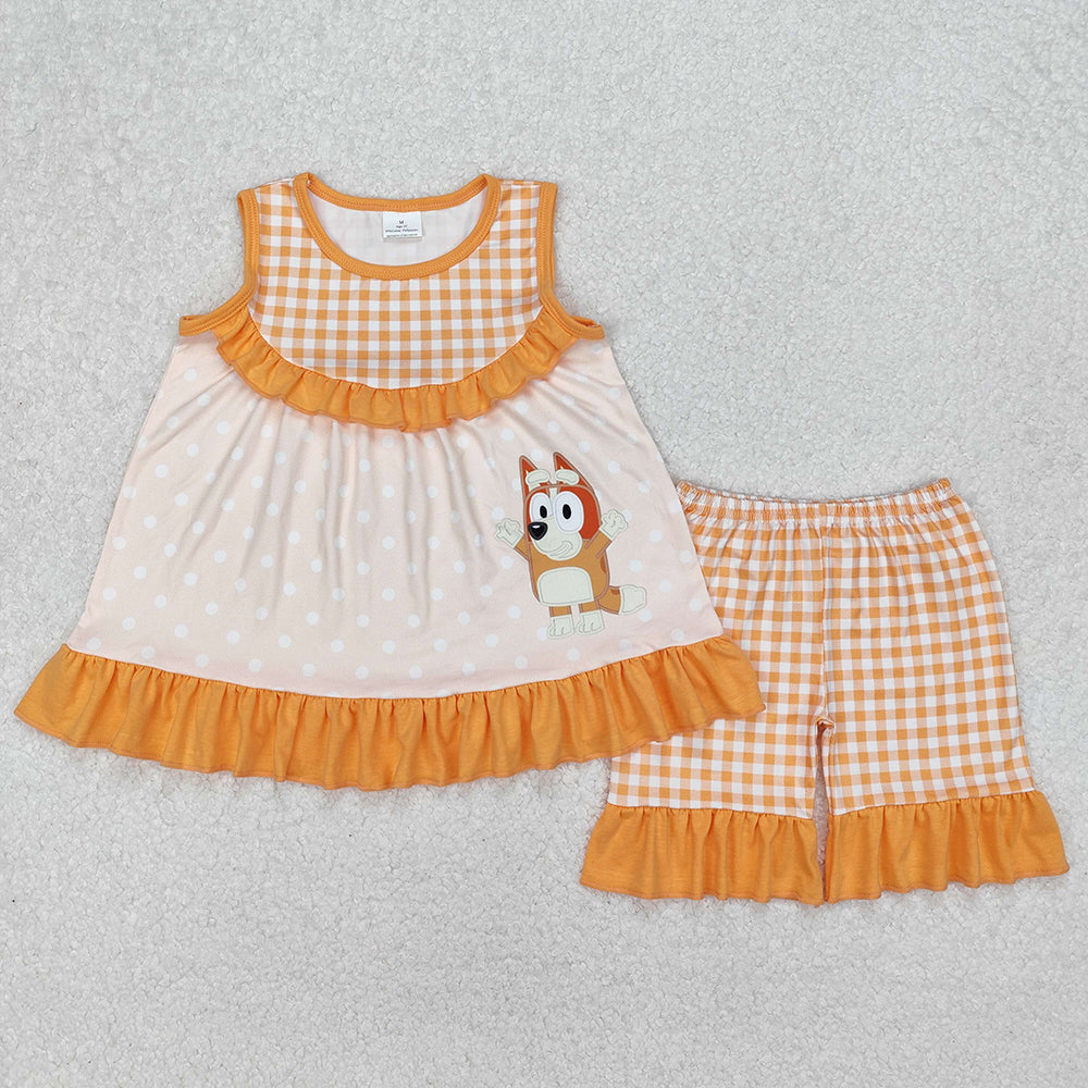 Baby Girls Clothes Orange Dots Dogs Tunic Tops Ruffle Shorts Sets GSSO2123 3.12