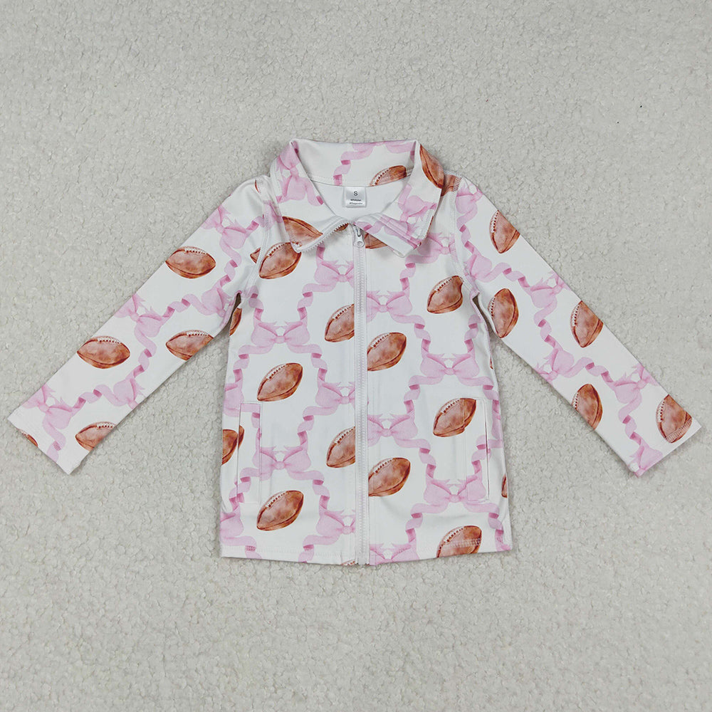 Baby Girls Clothes Pink Football Bows Pockets Zipper Yoga Activite Jackets Tops GT1088 9.1