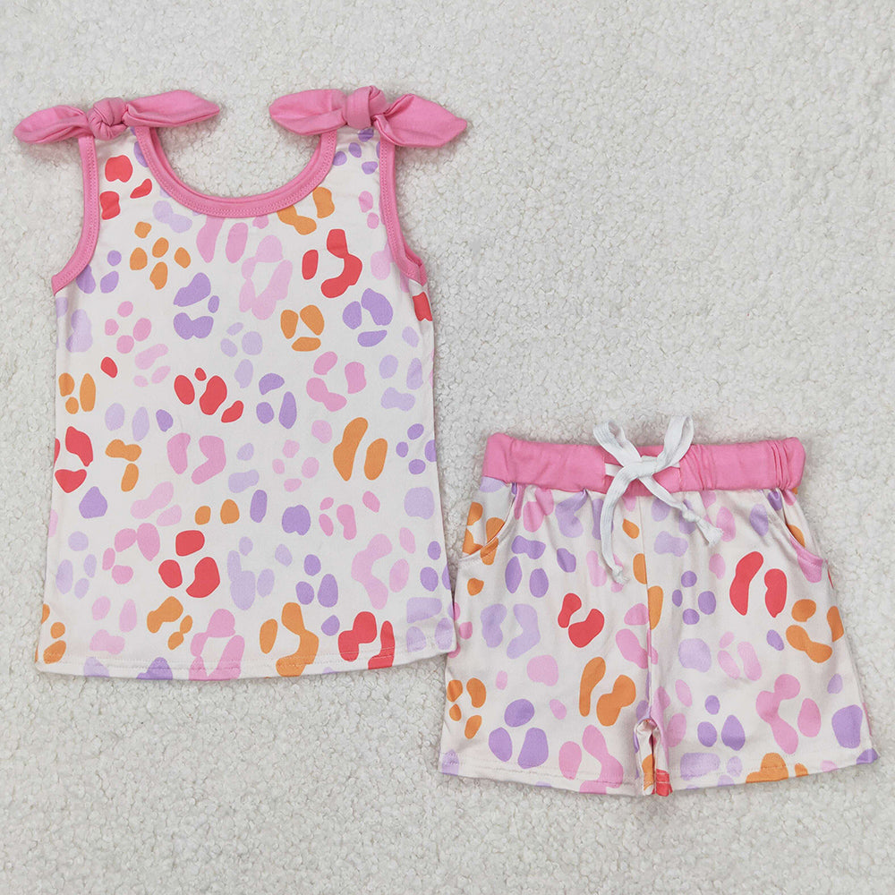 Baby Girls Clothes Pink Leopard Bows Top Shorts Sets GSSO2081