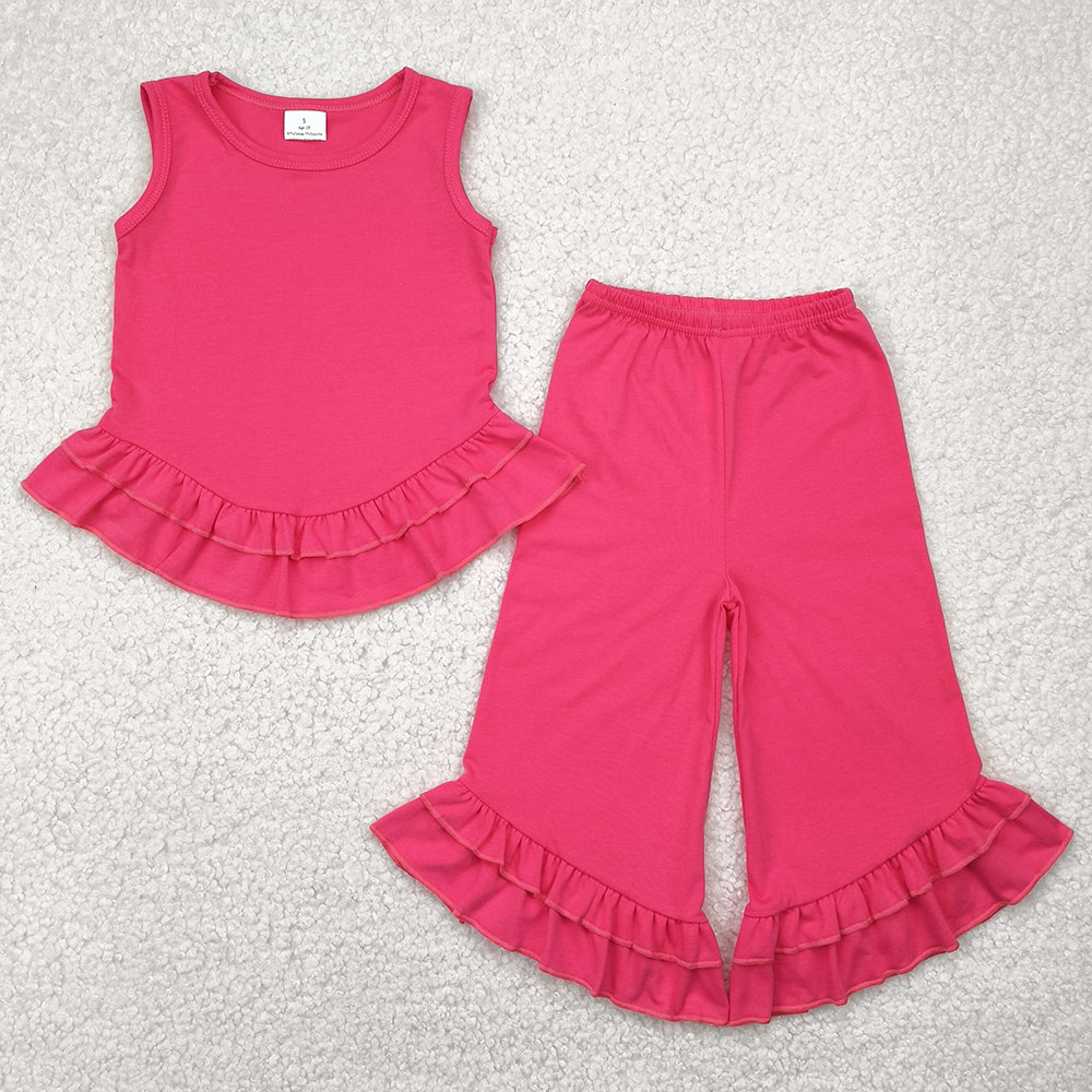 Baby Girls Clothes Pink Sleeveless Ruffle Top Bell Bottom Pants Sets GSPO2009 4.29