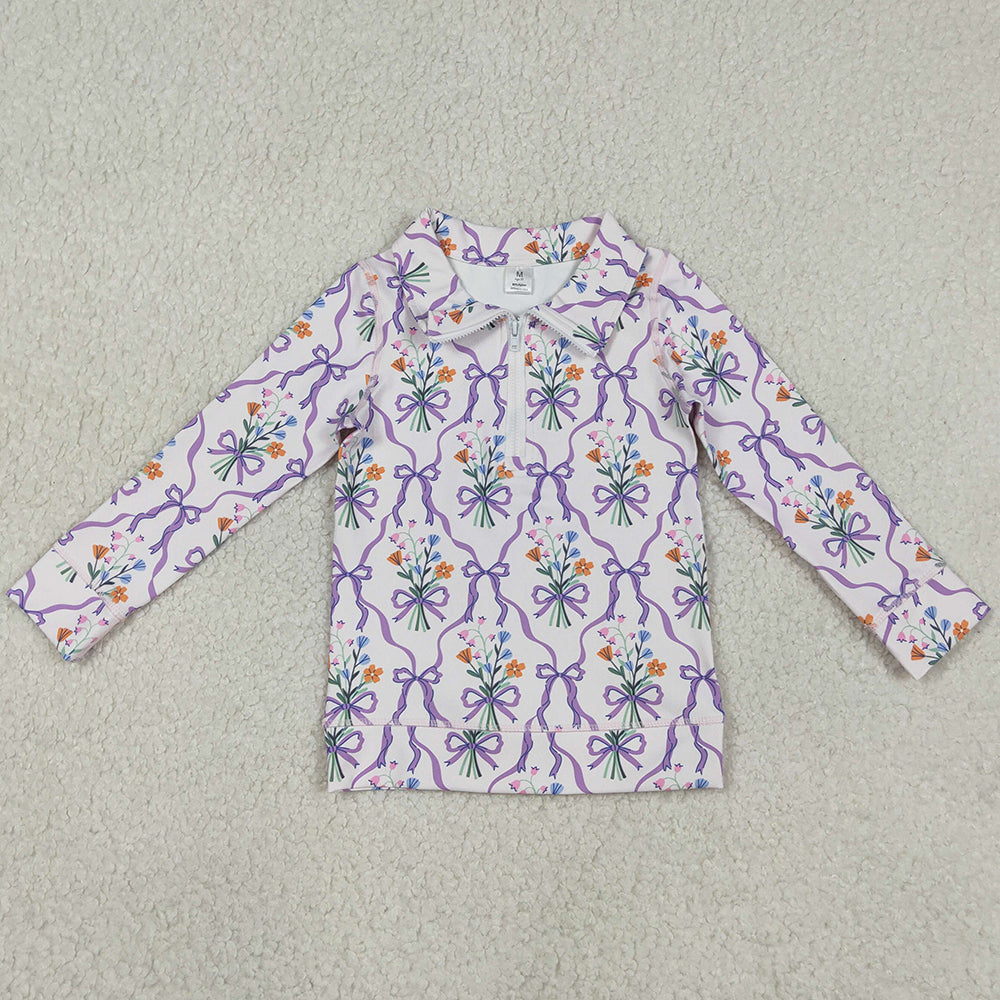 Baby Girls Clothes Purple Bows Flowers Checked Yoga Active Zipper Pullovers Top GT1371