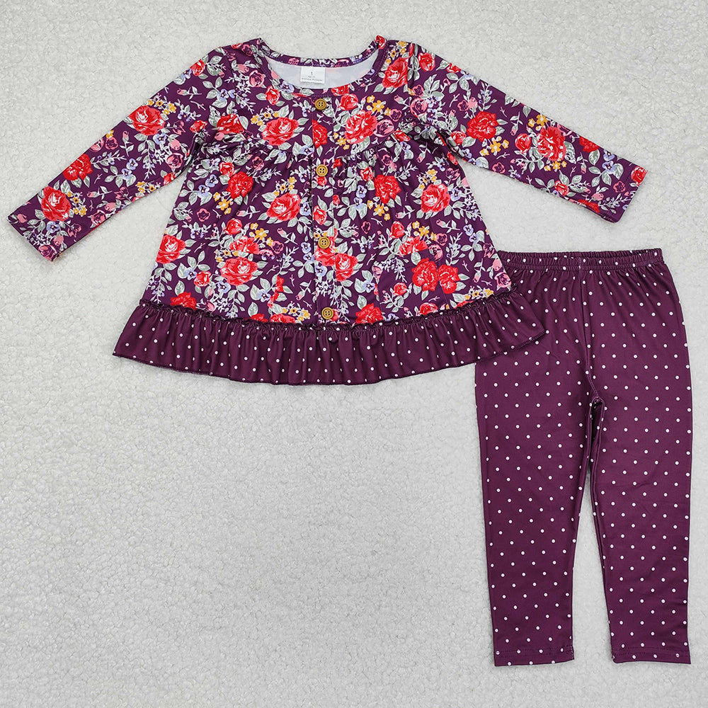 Baby Girls Clothes Purple Flowers Pockets Tunic Legging Outfits GLP1850
