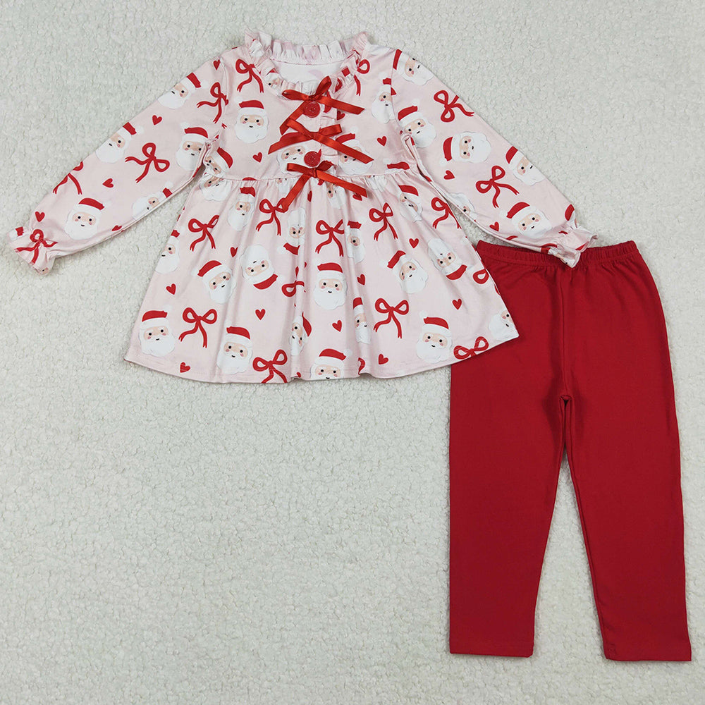 Baby Girls Clothes Red Bows Santa Button Tunic Legging Pant Christmas Clothes Set GLP2642 10.1