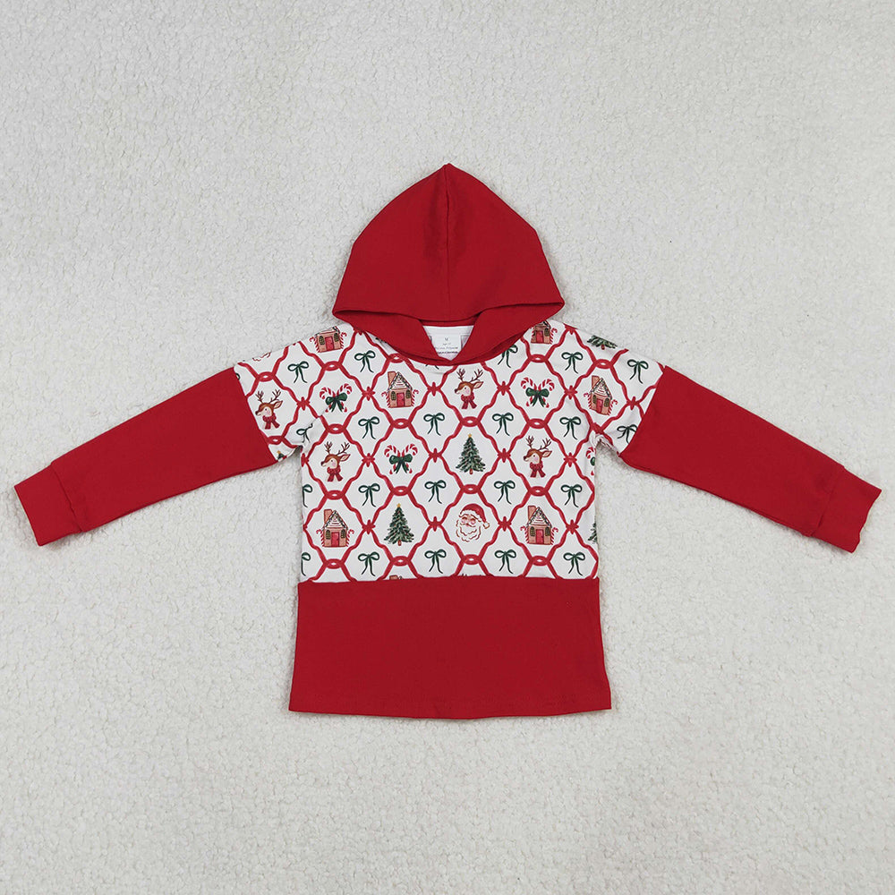 Baby Girls Clothes Red Christmas Bows Gingerbread Trees Santa Hoodies Tops GT1042 9.13