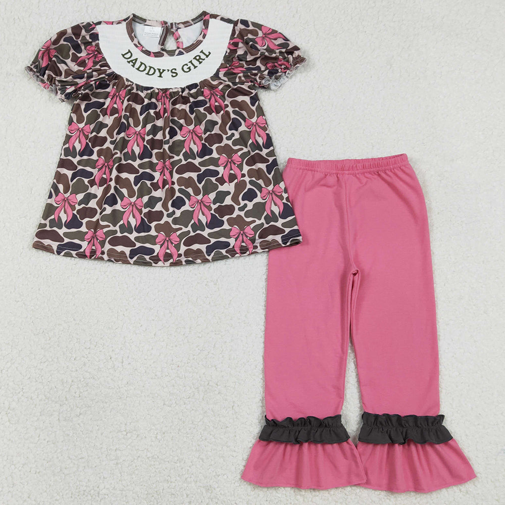 Baby Girls Clothes Smocked Daddy's Girl Brown Camo Bows Tunic Ruffle Pant Clothes Sets GSPO2025 1.2