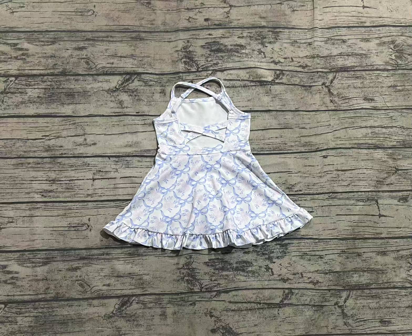 Baby Girls Clothes Strap Blue Bows Floral Yoga Ruffle Knee Length Dresses Preorder GSD2290 3.26