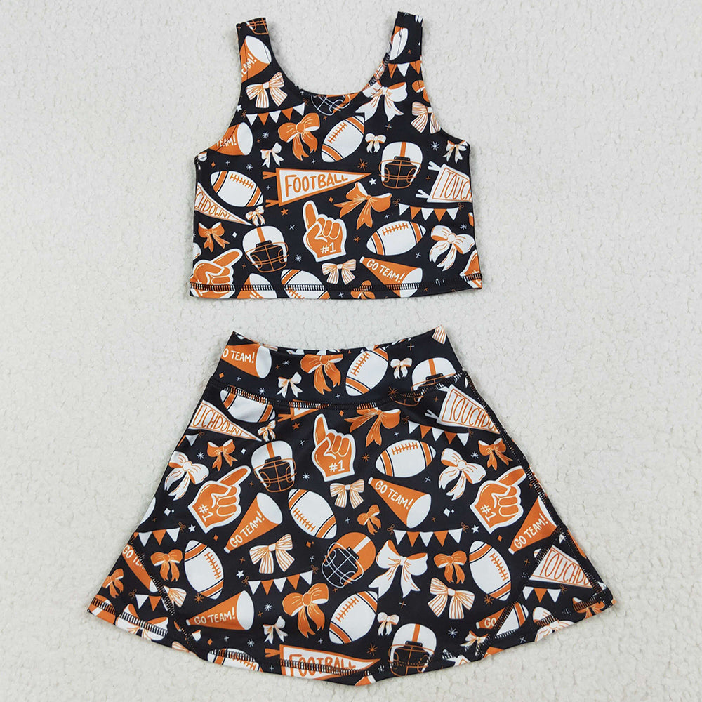 Baby Girls Clothes Team Orange Football Bows Vest Top Short Skirts Yoga Sets GSD2687 7.9