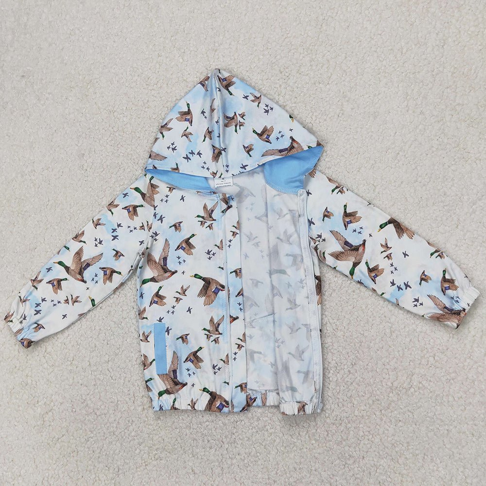Baby Girls Clothes Tops Ducks Mallard Hunting Blue Hooded Top Zip Tops GT0875