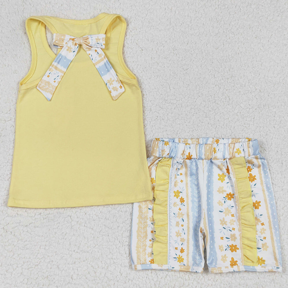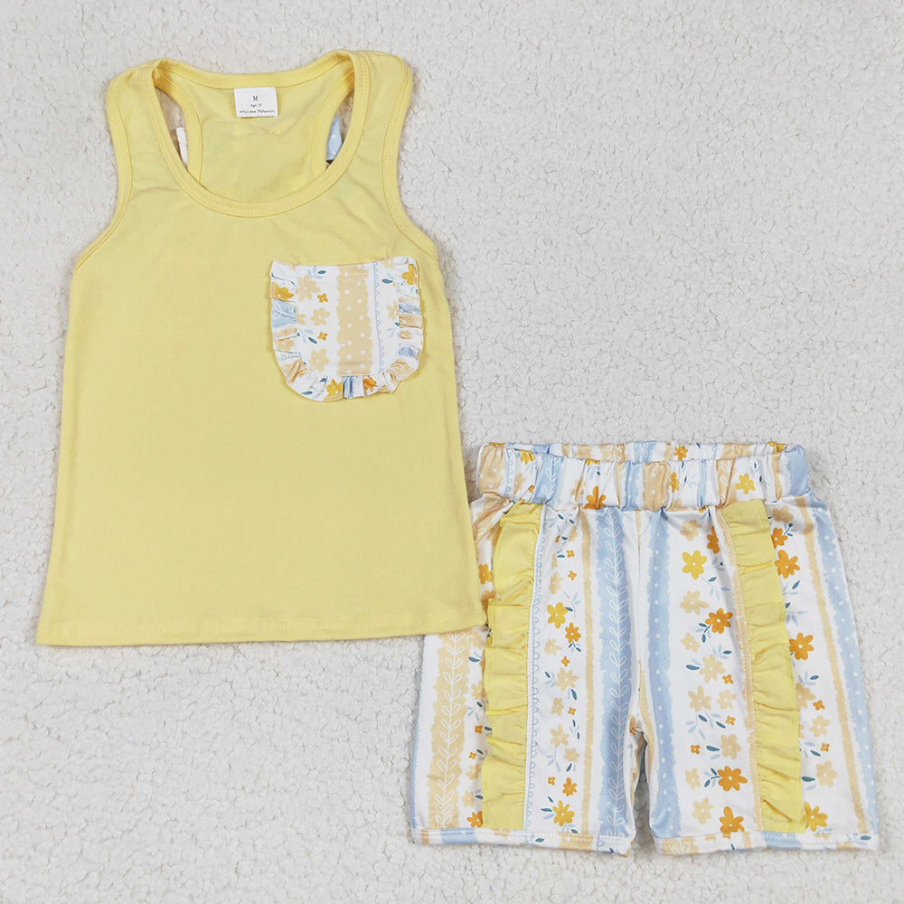 Baby Girls Clothes Yellow Vest Shirt Flowers Shorts Clothes Sets GSSO1788