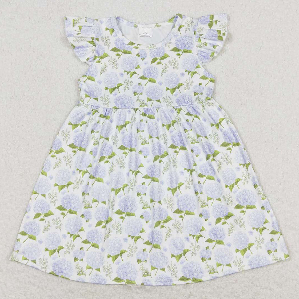Baby Girls Dress Blue Flowers Flutter Sleeve Knee Length Dresses GSD1100