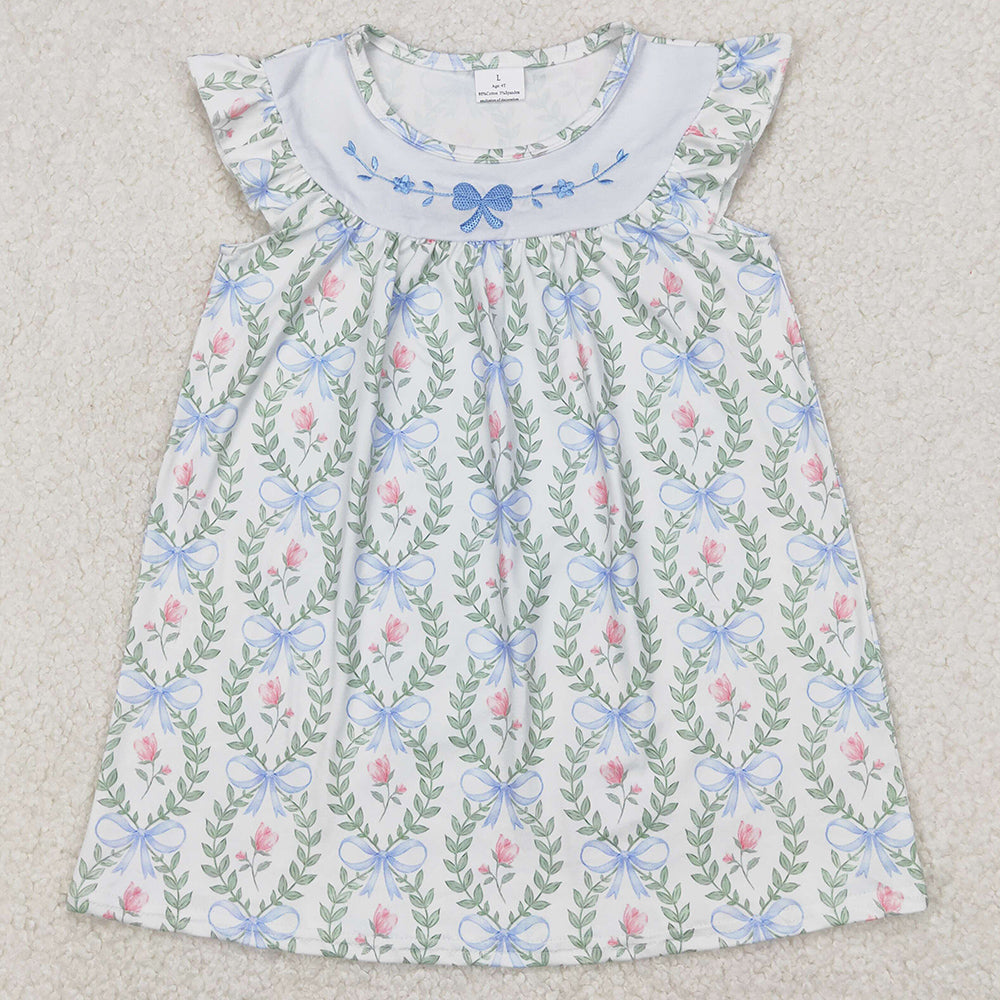 Baby Girls Dress Bows Leaves Embroidery Knee Length Dresses GSD1779