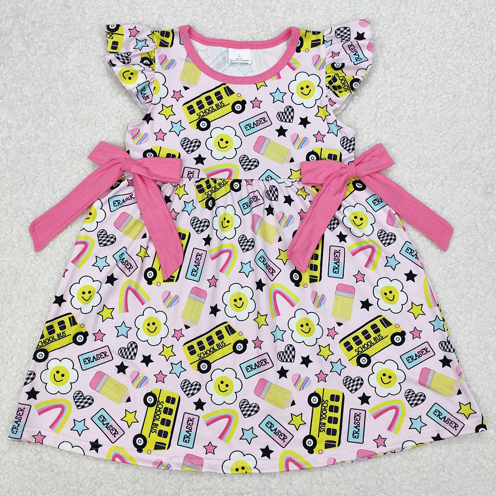 Baby Girls Dress Bus Back To School Bows Knee Length Dresses GSD1822 3.10