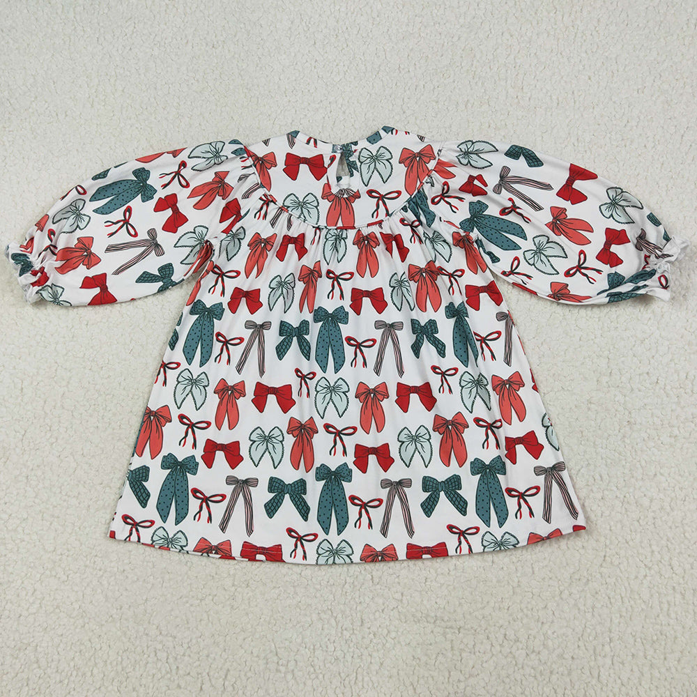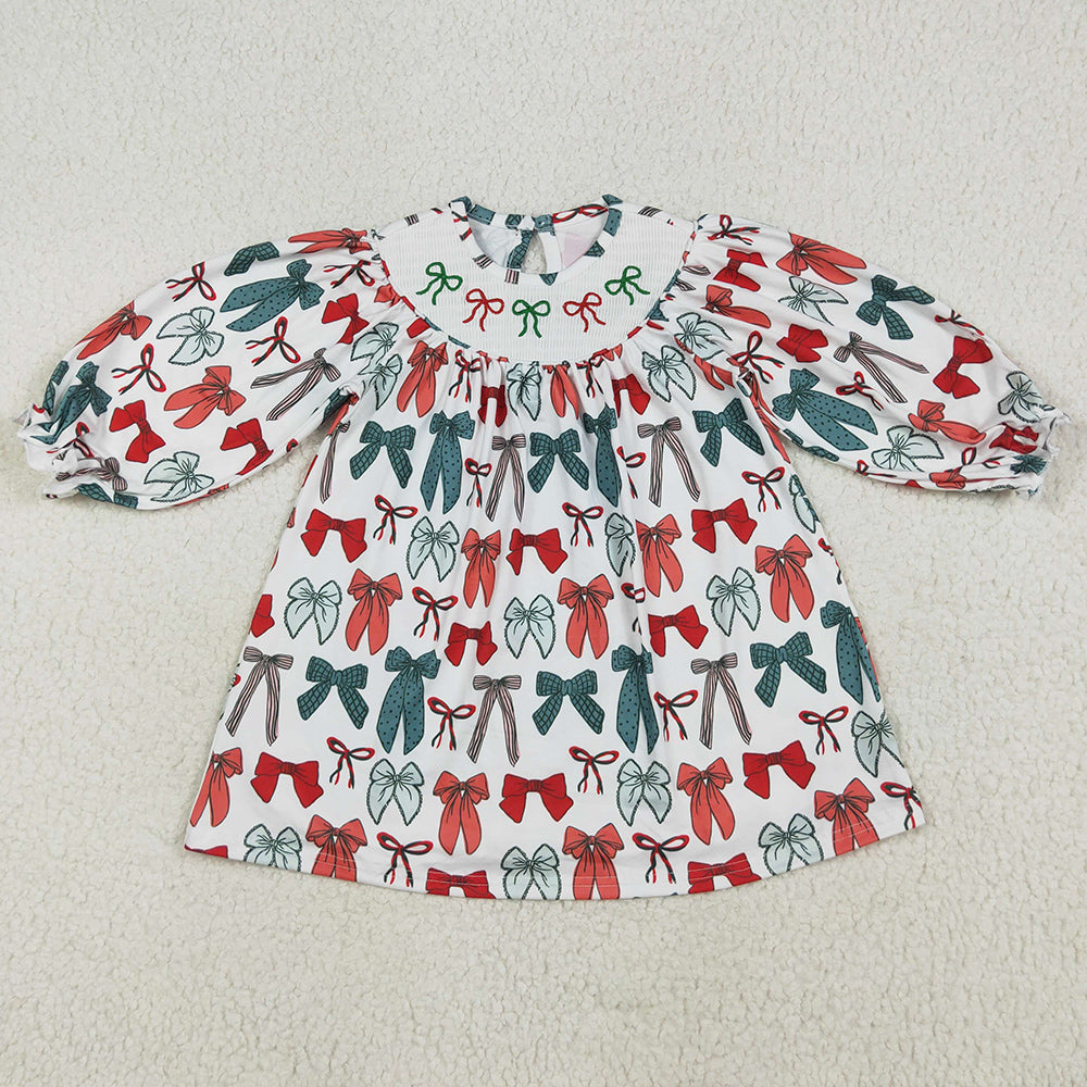 Baby Girls Dress Christmas Colorful Bows Smocked Knee Length Dresses GLD1028 7.9