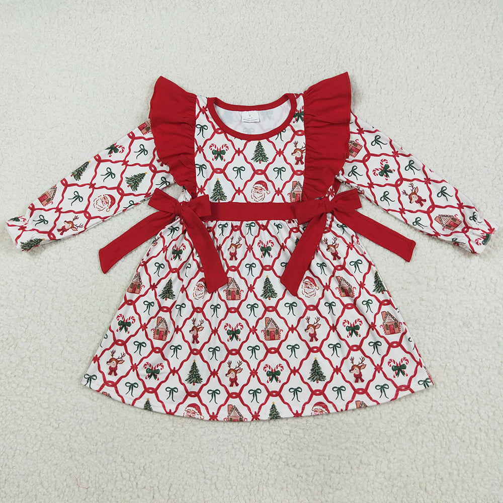 Baby Girls Dress Christmas Deers Bows Trees Knee Length Dresses GLD1158 8.5