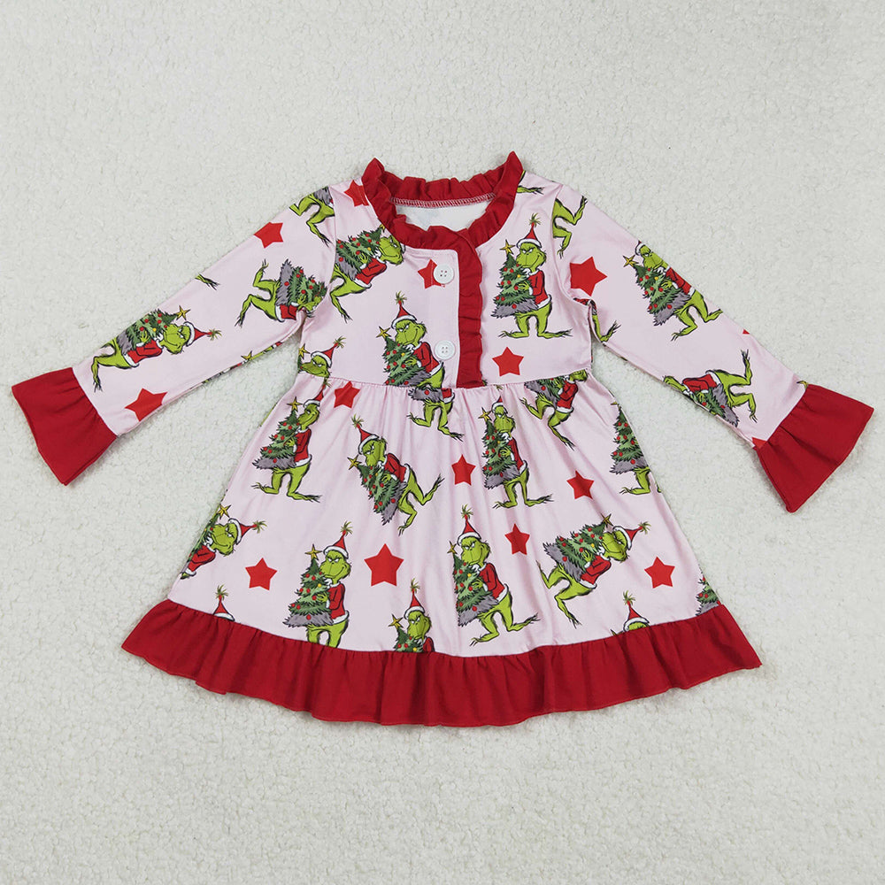 Baby Girls Dress Christmas Green Face Trees Ruffle Knee Length Dresses GLD1236 9.1