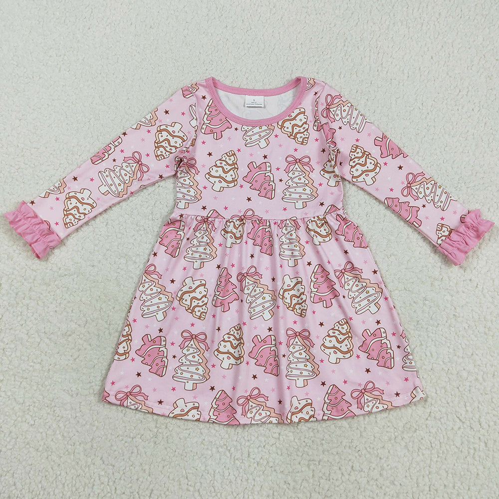 Baby Girls Dress Pink Christmas Trees Cake Knee Length Dresses GLD1124 8.9