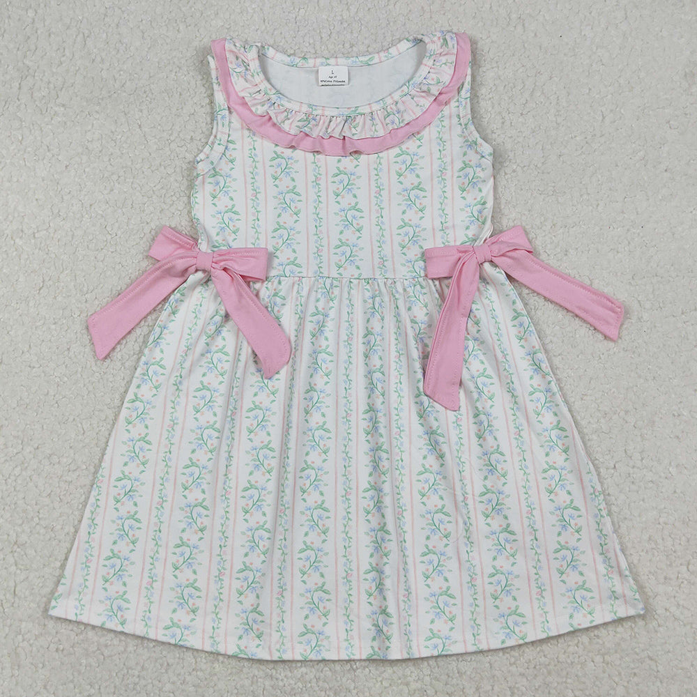 Baby Girls Dress Pink Floral Stripe Bows Knee Length Dresses GSD2678 9.9
