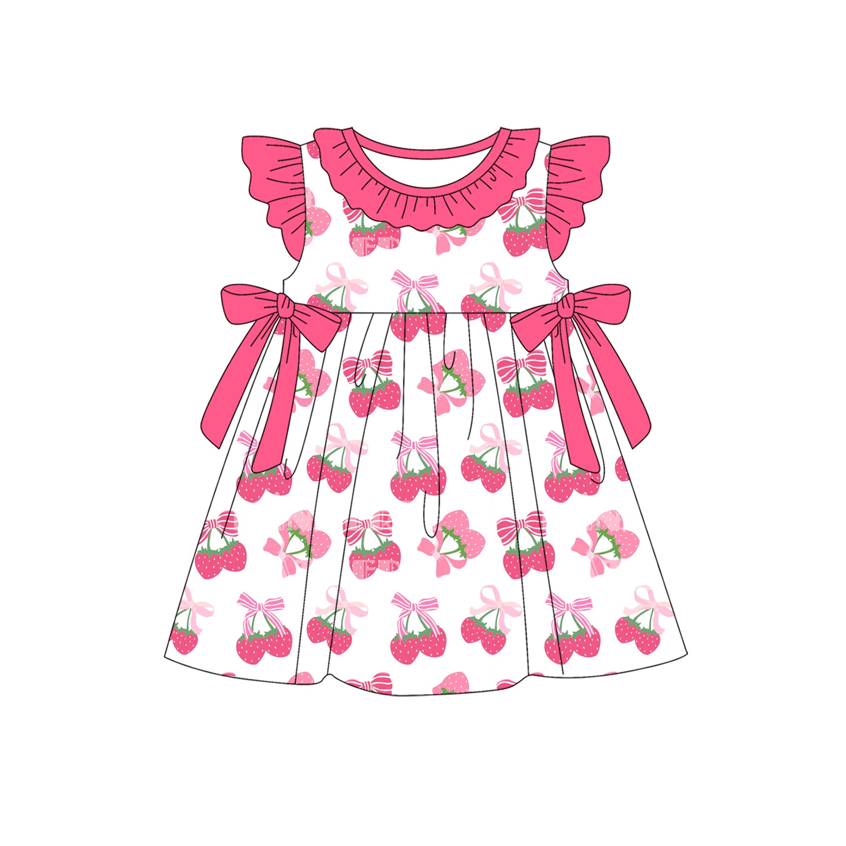 Baby Girls Dress Pink Flutter Sleeves Bows Strawberry Knee Length Dresses Preorder GSD2455 4.4