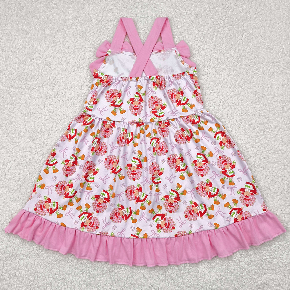 Baby Girls Dress Pink Strap Bows Strawberry Floral Knee Length Dresses GSD2213 4.21