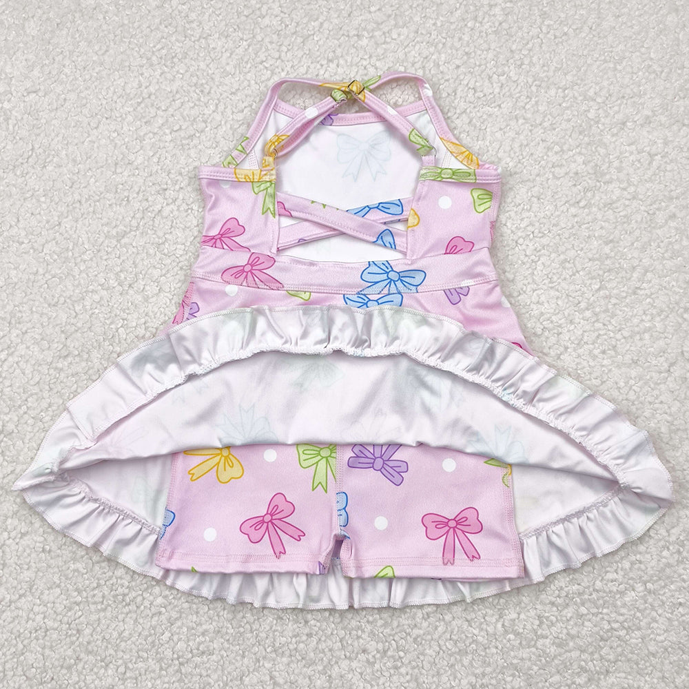 Baby Girls Dress Pink Strap Colorful Bows Polka Dots Yoga Ruffle Knee Length Dresses GSD2294 4.22