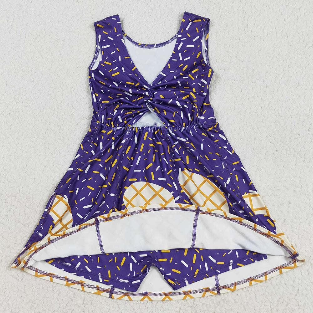 Baby Girls Dress Purple Drip Sleeveless Shorts Team Yoga Active Knee Length Dresses GSD2752 8.9