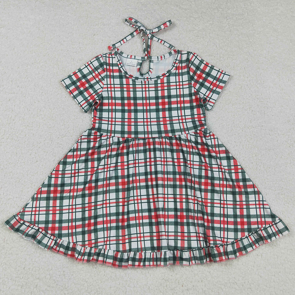 Baby Girls Dress Red Green Checked Christmas Ruffle Knee Length Dresses GSD2613 9.2