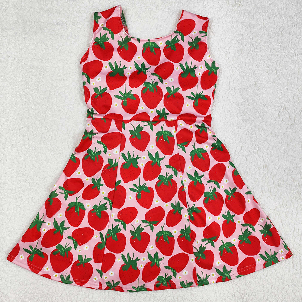 Baby Girls Dress Red Strawberry Sleeveless Knee Length Dresses Swimsuits GSD1843